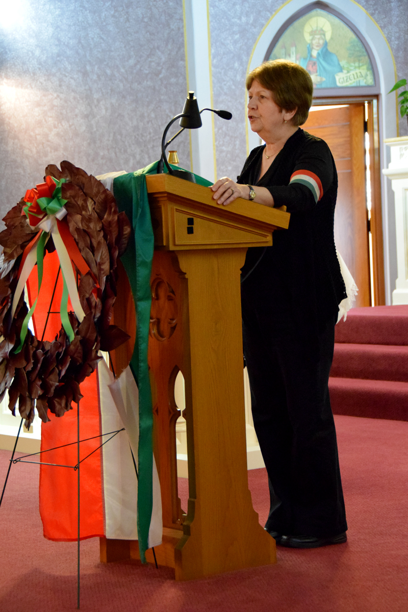 - Carolyn Balogh, as president of the Hungarian Cultural Garden, for donating the wreath that was placed at the 1956 and Mindszenty statues Sunday and for attending at the wreath-laying ceremony along with Misi Horvath, John & Marika Megyimori and their daughter Marika, Thomas Ratoni-Nagy and Eva Szabo