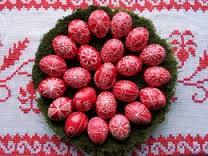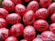 Within the Christian tradition, the custom of dyeing eggs red goes back a thousand years. Red symbolizes the blood of Christ; the egg, eternal life. Other colors began to be used only three hundred years ago. Hungarian Easter eggs are decorated with simple geometric shapes or ornamented with swirls of plants and flowers. Ancient symbols sometimes feature too: the wheel of the sun or the cockscomb, for example. The colorful flowers that adorn so many eggs echo the embroidery on Hungarian national costume. The decoration of Easter eggs is a Hungarian craft in its own right. Wax-resist dyeing is the most popular method: The pattern is painted onto the shell using a quill dipped in molten wax. The egg is dyed, and then warmed slightly to melt off the wax, so that the white, undyed pattern appears.
