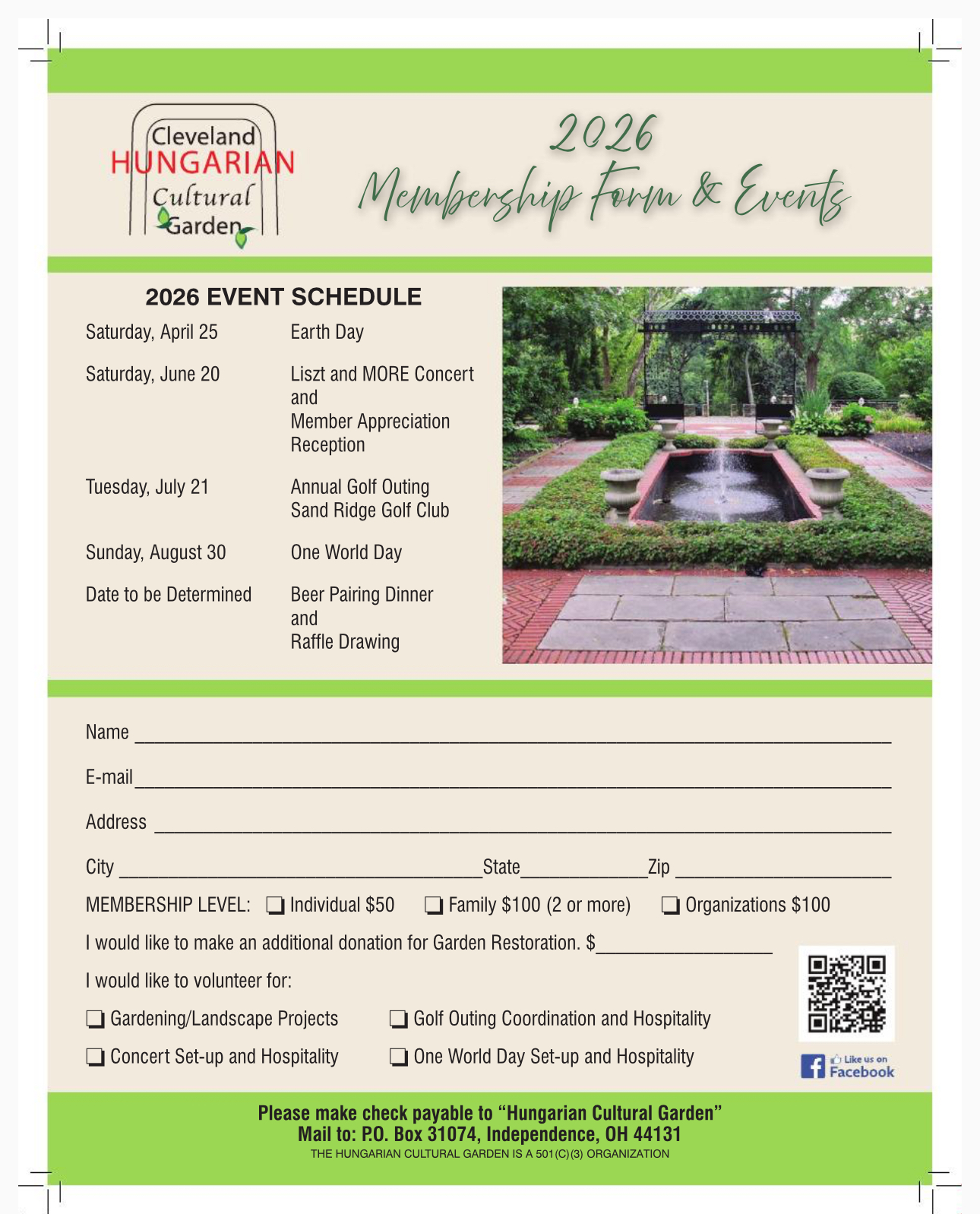 A Cleveland-i Magyar Kultur Kert tagjai 2026. április 25-én, szombaton 10:00–12:00 óra között Föld Napja alkalmából különféle programokat és önkéntes tevékenységeket szerveznek 🌱🤝.