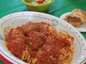 The meal consists of a generous portion of Spaghetti,