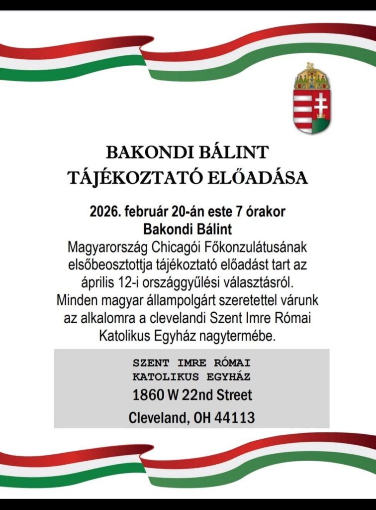 A rendezvényen Bakondi Bálint, Magyarország Chicagói Főkonzulátusának első beosztottja tart előadást.