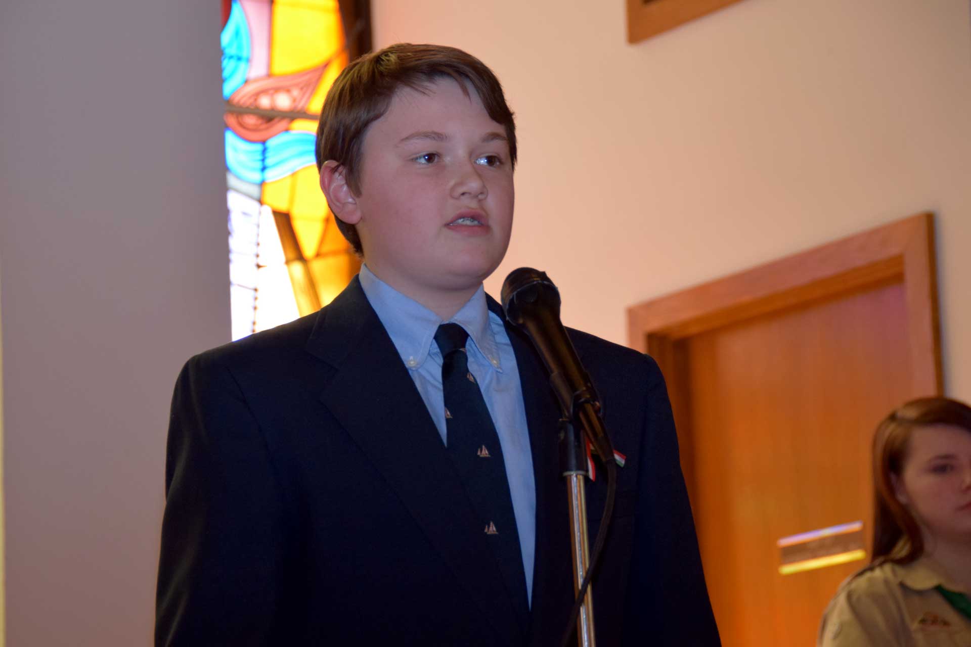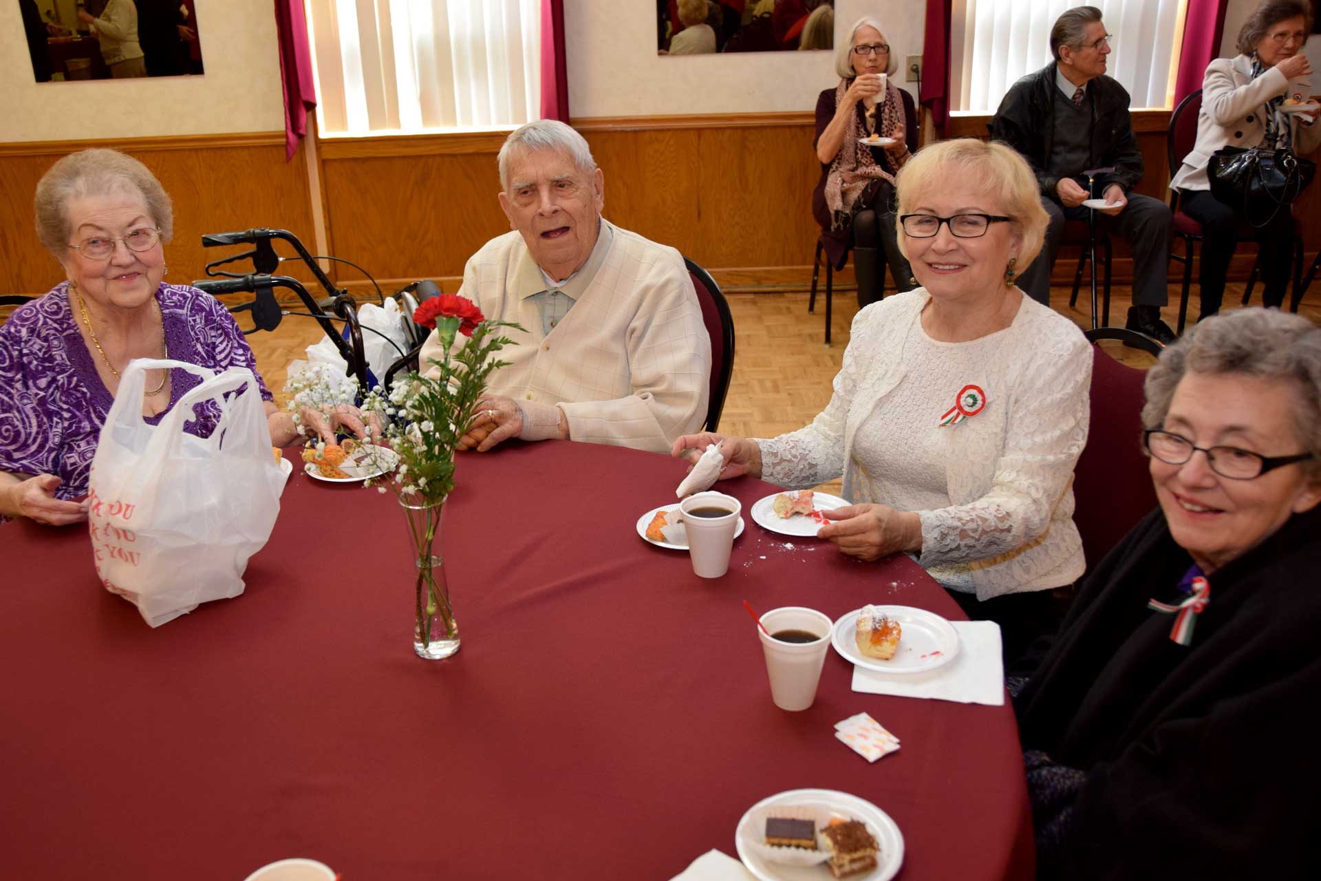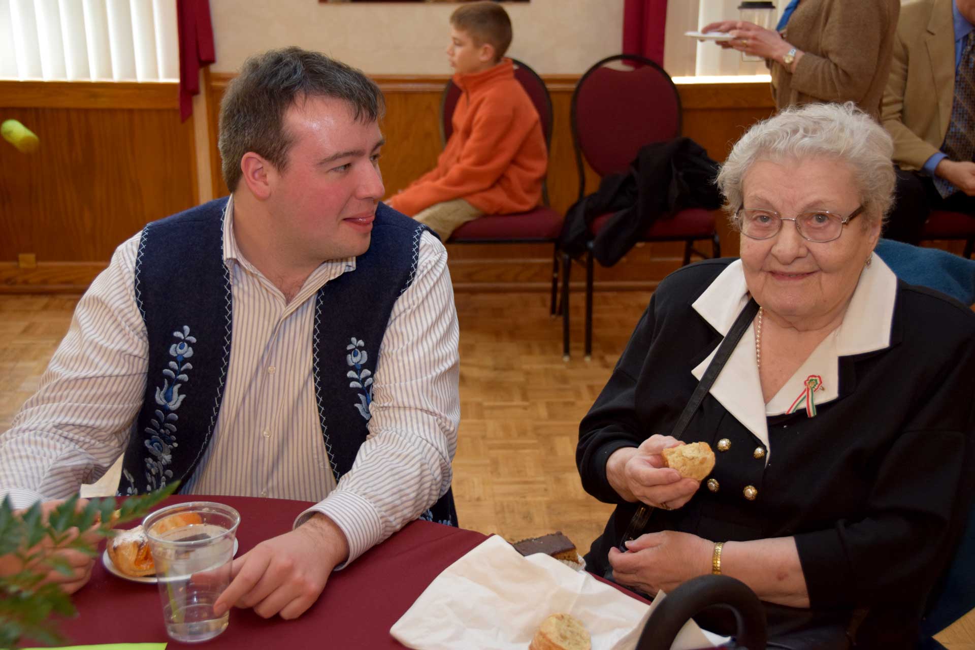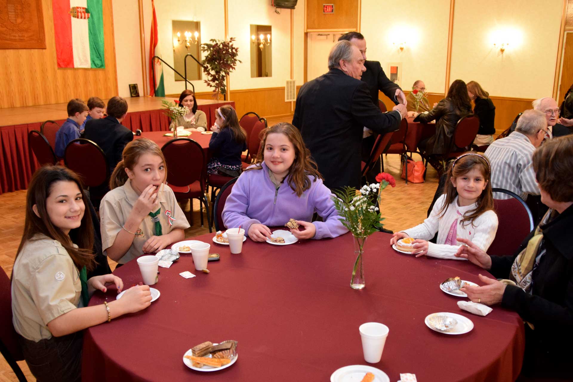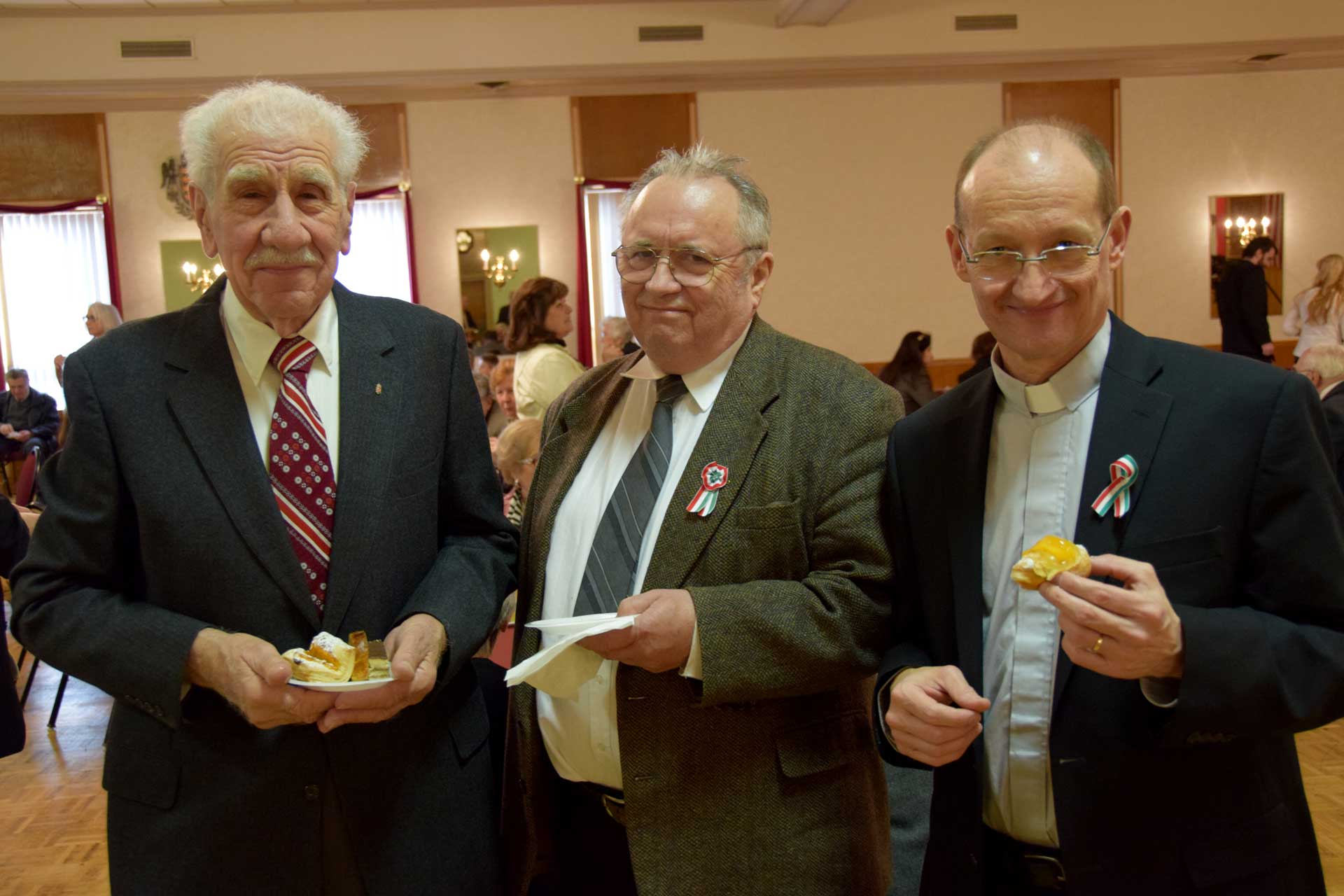 Sandor Petofi Hungarian verse “Nemzeti Dal” (National Song) was performed by Julian Balassy, a 5th grade student from the Cleveland Hungarian School and a member of Hungarian Boy Scout Troop #14. The guest speaker was Rev. Thomas G. Forrai, SJ, Provincial of the Hungarian Jesuit Province. Before the audience dispersed for coffee and dessert, the closing prayer was said by Rev. Dr. Csaba Krasnai of the First Hungarian Reformed Church and the Szekely Himnusz (Transylvanian anthem) was sung.